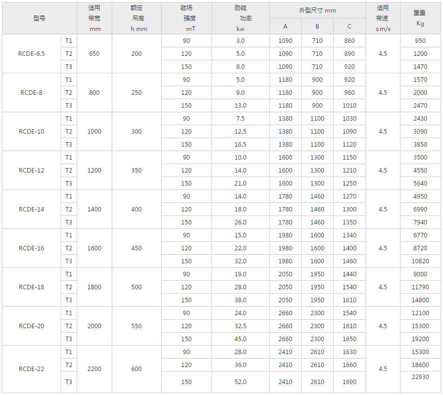 RCDE型油冷式電磁除鐵器,內部采用先進的內外置式油循環散熱管設計和內部勵磁線圈獨特繞制技術,全密封結構,具有磁力大、防塵、防雨、耐腐蝕、連續工作使用壽命長等特點。