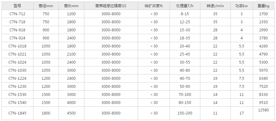 CTN型全逆流濕式磁選機其核心技術(shù)采用計算機模擬設(shè)計磁路,使磁選區(qū)的磁場分布更均勻,無空磁區(qū),磁系大包角設(shè)計,滾筒表面磁場強度高可達8000gs。槽體和滾筒表面做特殊耐磨處理,耐磨有多種方式可選,使整機壽命大大延長。